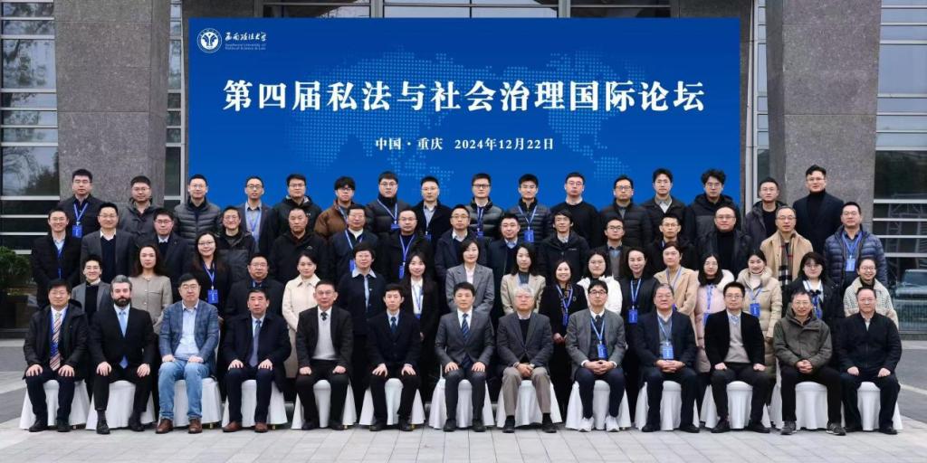 2024年12月22日,第四届“私法与社会治理国际论坛”在重庆举行。我院法学教研室受邀前往参加此次学术盛会,与国内外众多法学专家学者齐聚一堂,共同围绕“社会治理现代化中的法律责任”这一主题展开深入研讨。