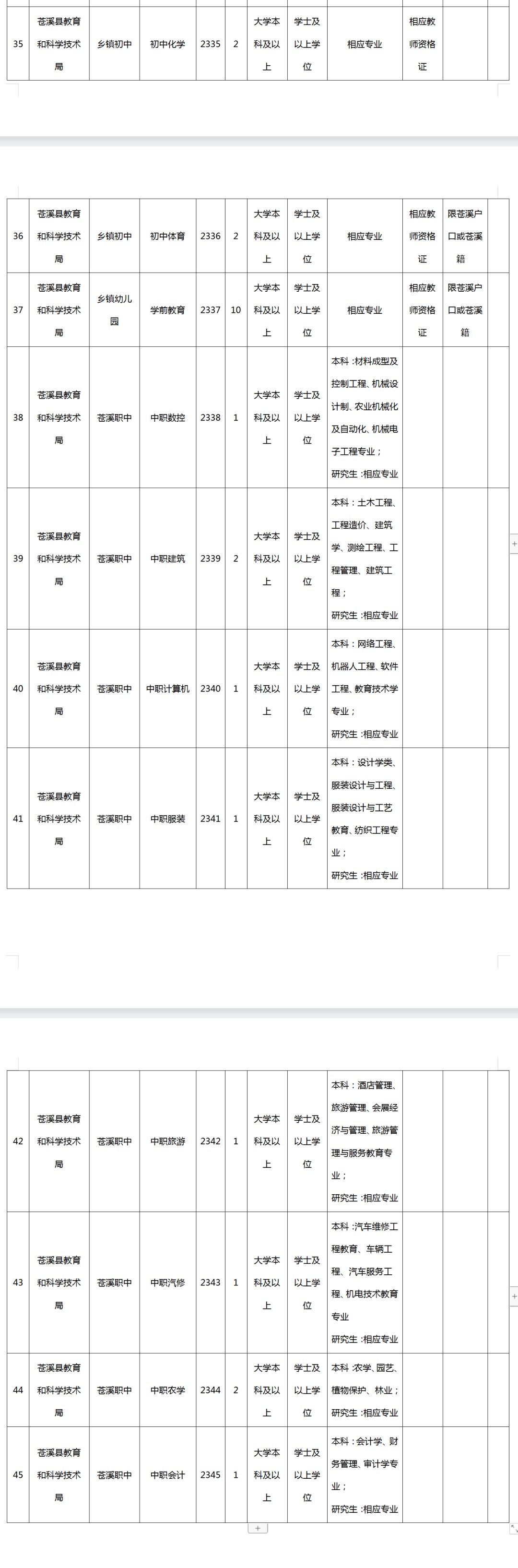 符合岗位条件要求的各类人才(不包括在苍溪县参加工作的事业单位在编人员、与苍溪县用人单位已签订就业意向书人员;县外在编机关事业单位人员须提供工作单位及主管部门同意证明书方可报考)。2023年应届毕业生须在2023年7月31日前取得岗位要求的相应证书;其他人员须在资格审查前取得岗位要求的相应证书。