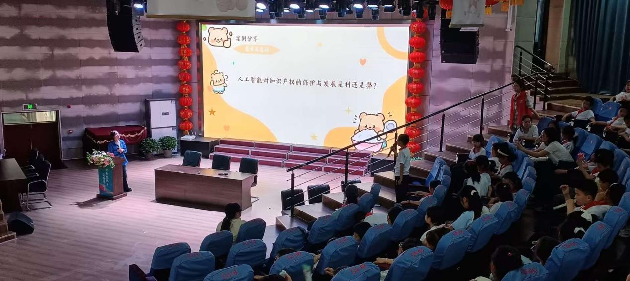 本次知识产权进校园活动采取朋辈宣讲形式举行,是今年知识产权进校园系列活动之一,由我校大学生法律协会的志愿者给三里小学的小朋友进行知识产权宣讲。我院23级知识产权专业学生陈可益为参会小朋友做了题为“守护创新之光”主题讲座。陈可益首先给小朋友们介绍了何为知识产权,接着围绕常见知识产权为小朋友们讲解知识产权的基础知识,和小朋友们分享了人工智能对知识产权发展的影响,结合小朋友们的日常生活给出了保护知识产权的建议。宣讲会现场,陈可益通过互动引导小朋友们参与讨论,激发小朋友学习兴趣。此次活动,不仅为同学们搭建了近距离接触知识产权知识的桥梁,更在校园内播撒了保护创新、尊重智慧的种子。