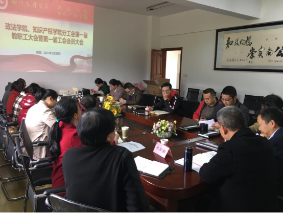 3月23日下午,政法学院、知识产权学院在莲湖校区博文楼611会议室召开了第一届教职工代表暨第一届工会会员大会。大会审议通过了学院工作报告,选举产生政法学院、知识产权学院第一届分工会委员会委员、分工会委员会主席,学校两代会代表。学院党总支书记岳臣忠、院长刘长江出席会议,学校教学督导委员会副主任杜松柏到会指导,会议由党总支副书记莫春梅主持,全体教职工及工会会员参加了会议。