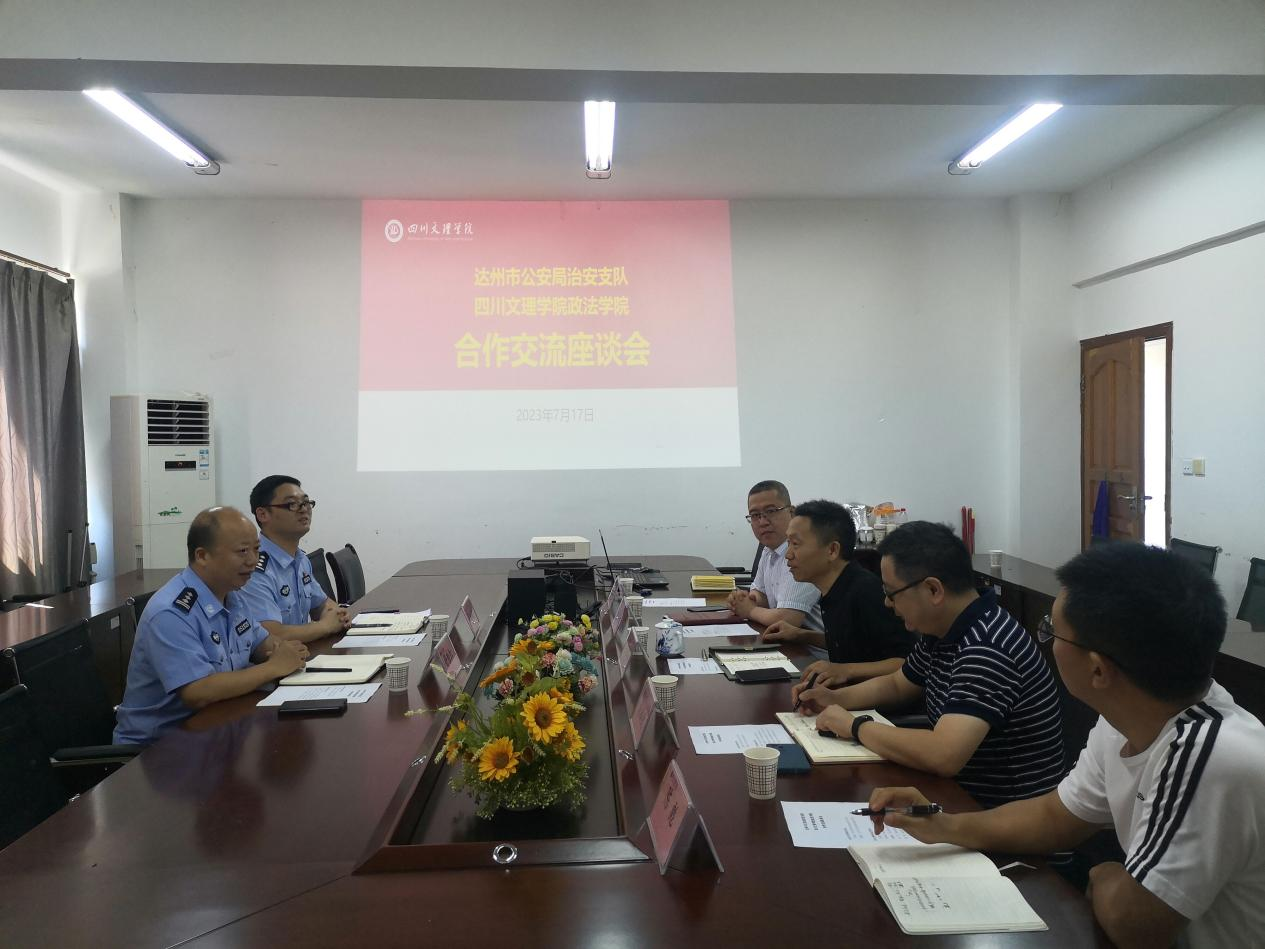 7月17日上午,达州市公安局治安支队与学院合作交流座谈会在博文楼611会议室召开,会议由学院党委书记岳臣忠主持,达州市公安局治安支队支队长舒胜红、达州市公安局治安支队基础大队长瞿洪波出席会议,学院法学教研室、行政管理教研室部分教师参加会议。