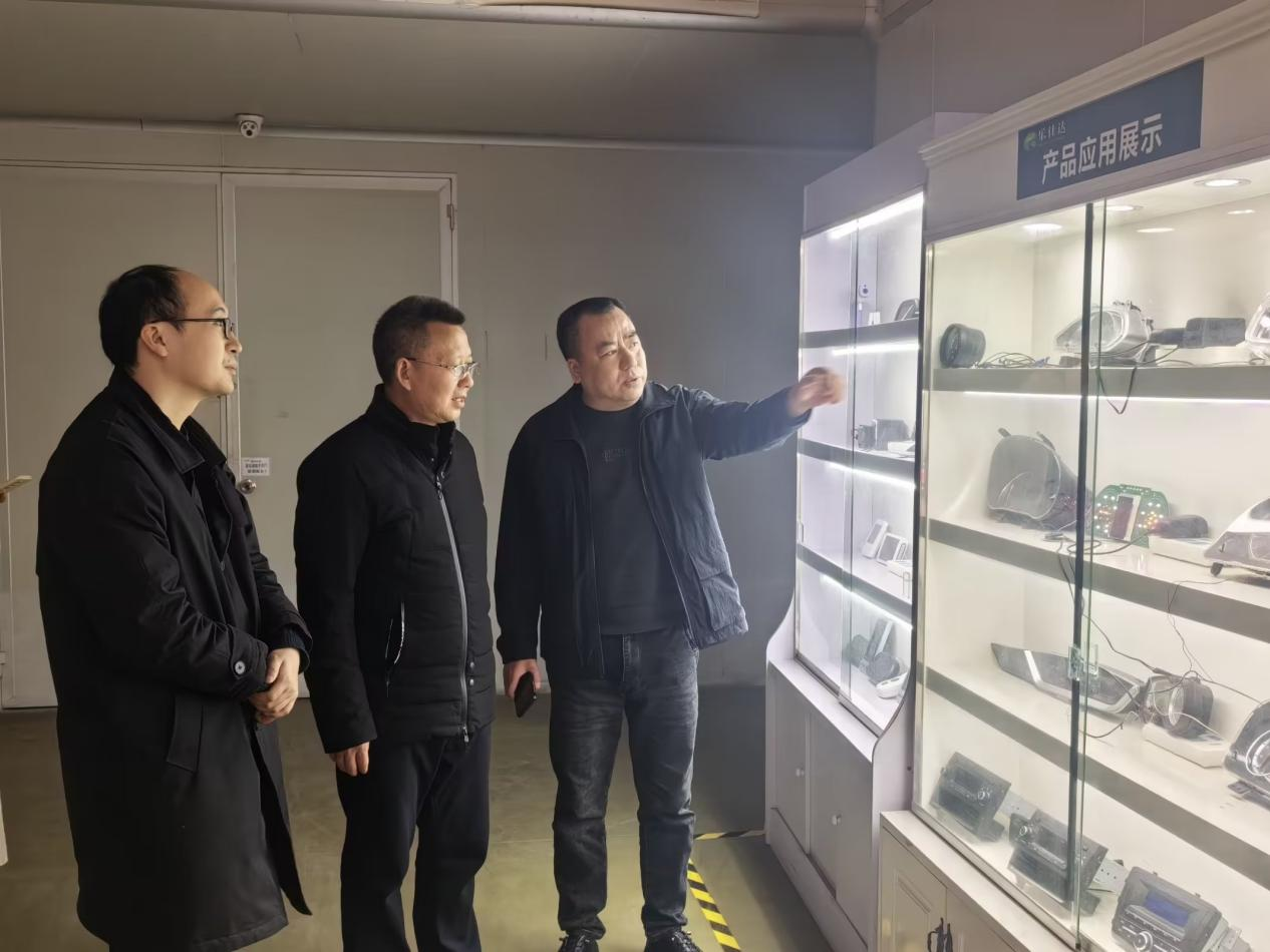 (刘长江一行参观乐仕达产品陈列室)