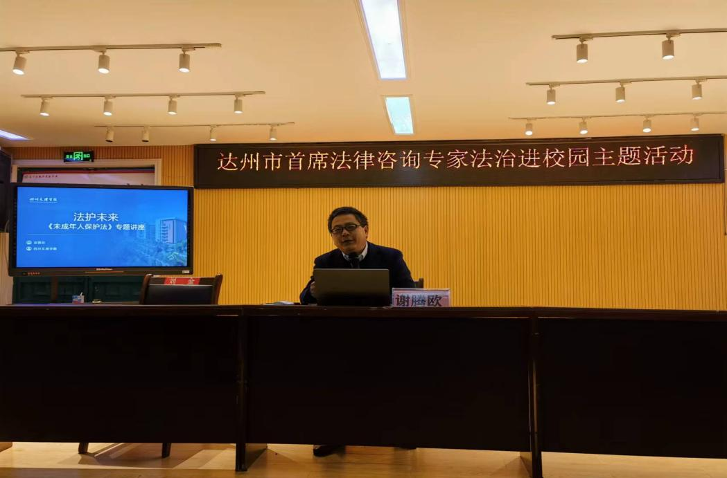 11月30日,达州市第一届首席法律咨询专家、我院教师、四川省知识产权培训(四川文理学院)基地办公室主任谢腾欧应邀为通川区魏兴实验学校学生作“法护未来”《未成年保护法》专题讲座。