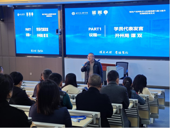 11月17日,为期五天的知识产权纠纷多元化解机制与能力提升培训在我校落下帷幕。结业仪式上,政法学院、知识产权学院院长刘长江作总结讲话,并为学员代表颁发结业证书。重庆市开州区市监局副局长谭双、宣汉县市监局周翀分享学习心得。